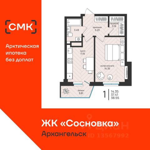 Акции месяца от Группы Аквилон: ПРОДАЖИ СТАРТОВАЛИ! Арктическая ипотека! Семейная ипотека! Доп.СКИДКА 2% при 100% оплате! Доп.СКИДКА 2% за быстрый выход на сделку! Отдел продаж работает без выходных. Продажа напрямую от Застройщика. Белая отделка квартиры (готова к ремонту). Сдача 3 кв. 2029 г. ЖИЛОЙ КОМПЛЕКС "Аквилон АЛЬТА": Проект от архитектурного бюро MLA+. ЖК класса "бизнес". Концепция Термо-С: монолитная конструкция дома с увеличенным слоем утеплителя и навесными фасадами. Стены 540 мм. Экономия на коммунальных платежах до 40%: коллекторная бесстояковая разводка системы отопления с поквартирным учетом тепла, двухтарифные электросчетчики, современные приборы отопления уменьшенной высоты со встроенными терморегуляторами. Увеличенный слой утеплителя, кровли и цоколя 180 мм, класс энергосбережения А+ (очень высокий). Система инХОУМ: контроль за квартирой из мобильного приложения, "умные" счетчики, датчики защиты от пожара, протечек, открытия входной двери, IP-домофония с интерактивным многофункциональным экраном в каждой квартире, единый ключ, открывающий двери в необходимые помещения, дистанционное отключение электроустановок в квартире. Видеонаблюдение. Дизайнерская отделка парадных, бесшумные и энергоэффективные лифты, колясочные. Светопрозрачные входные группы, безбарьерная среда (вход с уровня земли). Сити-боксы и паркинг на нулевом этаже. ДВОР: Закрытый двор. Благоустройство двора: разновозрастные детские площадки с антитравматическим покрытием, велопарковки, зоны отдыха со скамейками, озеленение территории. Двор свободный от машин. Дренажная система "двор без луж". КВАРТИРА: Лоджии во всех квартирах с панорамным остеклением, большие окна. Высота потолков не ниже 2,7 метра, высота потолков 3 м. на верхнем этаже Увеличенная шумоизоляция. Увеличенные и энергоэффективные многокамерные стеклопакеты, улучшенная вентиляция. Преимущества покупки от Группы Аквилон: — БЕСПЛАТНОЕ юридическое сопровождение сделки, помощь в подаче заявки и одобрении ипотеки; — АРКТИЧЕСКАЯ ИПОТЕКА; — ВЫКУП вашей квартиры: обмен вторички на новострой моментально; Трейд-ИН с доп. скидкой до 150 000 руб.; — доп. СКИДКА до 125 000 руб. для работников государственных бюджетных организаций в сфере образования, культуры и медицины, предприятий ОАО ПО "Севмаш", ОАО "ЦС "Звездочка", АО "СПО Арктика", многодетным семьям до 3 лет, жителям области. Продам 1-комнатную квартиру в дешевой новостройке в Архангельской области.