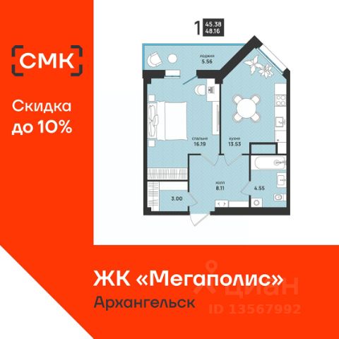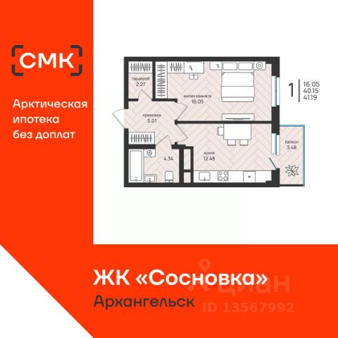 Акции месяца от Группы Аквилон: Рассрочка на ПЕРВЫЙ ВЗНОС! В апреле СКИДКИ до 2 млн ₽! Комфортные программы рассрочки от Застройщика! Арктическая и Семейная ипотеки!Доп.СКИДКА 200 000 ₽ за использование мат.капитала!Доп.СКИДКА 1% за быстрый выход на сделку! Доп.СКИДКА 3% при 100% оплате! Отдел продаж работает без выходных. Продажа напрямую от Застройщика. Белая отделка квартиры (готова к ремонту). Сдача 4 кв. 2026 г. ЖИЛОЙ КОМПЛЕКС "АКВИЛОН МайСкай": Проект бюро известного финского архитектора Юкки Тикканена. ЖК класса бизнес-лайт. Концепция Термо-С: монолитная технология, внешние стены 460 мм. Экономия на коммунальных платежах до 40%: коллекторная бесстояковая разводка системы отопления с поквартирным учетом тепла, двухтарифные электросчетчики, современные приборы отопления уменьшенной высоты со встроенными терморегуляторами. Увеличенный слой утеплителя, кровли и цоколя 180 мм, класс энергосбережения А+ (очень высокий). Система инХОУМ: контроль за квартирой из мобильного приложения, "умные" счетчики, датчики защиты от пожара, протечек, открытия входной двери, IP-домофония с интерактивным многофункциональным экраном в каждой квартире, единый ключ, открывающий двери в необходимые помещения, дистанционное отключение электроустановок в квартире. Видеонаблюдение. Дизайнерская отделка парадных, бесшумные и энергоэффективные лифты, колясочные. Светопрозрачные входные группы, безбарьерная среда (вход с уровня земли). Подземный паркинг и сити-боксы на нулевом этаже. ДВОР: Закрытый двор. Благоустройство двора-сада: разновозрастные детские площадки с антитравматическим покрытием, веревочная пирамида, велопарковки, зоны отдыха со скамейками, озеленение территории, столы для пинг-понга. Двор свободный от машин. Дренажная система "двор без луж". КВАРТИРА: Лоджии во всех квартирах с панорамным остеклением, большие окна. Высота потолков не ниже 2,7 метра, высота потолков 3 м на верхнем этаже Увеличенная шумоизоляция. Увеличенные и энергоэффективные многокамерные стеклопакеты, улучшенная вентиляция. Преимущества покупки от Группы Аквилон: — БЕСПЛАТНОЕ юридическое сопровождение сделки, помощь в подаче заявки и одобрении ипотеки; — АРКТИЧЕСКАЯ ИПОТЕКА; — ВЫКУП вашей квартиры: обмен вторички на новострой моментально; Трейд-ИН с доп. скидкой до 150 000 руб.; — доп. СКИДКА до 125 000 руб. для работников государственных бюджетных организаций в сфере образования, культуры и медицины, предприятий ОАО ПО "Севмаш", ОАО "ЦС "Звездочка", АО " СПО Арктика", многодетным семьям до 3 лет, жителям области.