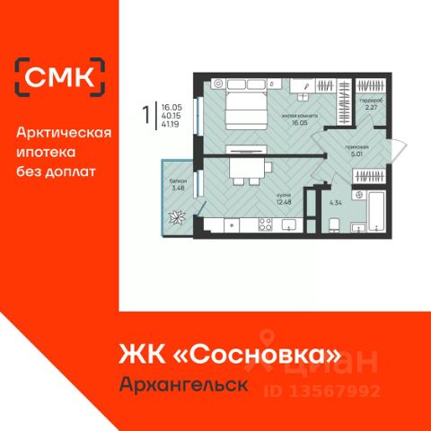 Мероприятия месяца от Группы Аквилон: 18.04 Бесплатная экскурсия по новостройкам! Акции месяца от Группы Аквилон: Арктическая и Семейная ипотеки! Доп.СКИДКА 200 000 ₽ за использование мат.капитала! Комфортные программы рассрочки от Застройщика! Доп.СКИДКА 2% за быстрый выход на сделку! Доп.СКИДКА 3% при 100% оплате! Отдел продаж работает без выходных. Продажа напрямую от Застройщика. Белая отделка квартиры (готова к ремонту). Сдача 3 кв. 2029 г. ЖИЛОЙ КОМПЛЕКС "Аквилон АЛЬТА": Проект от архитектурного бюро MLA+. ЖК класса "бизнес". Концепция Термо-С: монолитная конструкция дома с увеличенным слоем утеплителя и навесными фасадами. Стены 540 мм. Экономия на коммунальных платежах до 40%: коллекторная бесстояковая разводка системы отопления с поквартирным учетом тепла, двухтарифные электросчетчики, современные приборы отопления уменьшенной высоты со встроенными терморегуляторами. Увеличенный слой утеплителя, кровли и цоколя 180 мм, класс энергосбережения А+ (очень высокий). Система инХОУМ: контроль за квартирой из мобильного приложения, "умные" счетчики, датчики защиты от пожара, протечек, открытия входной двери, IP-домофония с интерактивным многофункциональным экраном в каждой квартире, единый ключ, открывающий двери в необходимые помещения, дистанционное отключение электроустановок в квартире. Видеонаблюдение. Дизайнерская отделка парадных, бесшумные и энергоэффективные лифты, колясочные. Светопрозрачные входные группы, безбарьерная среда (вход с уровня земли). Сити-боксы и паркинг на нулевом этаже. ДВОР: Закрытый двор. Благоустройство двора: разновозрастные детские площадки с антитравматическим покрытием, велопарковки, зоны отдыха со скамейками, озеленение территории. Двор свободный от машин. Дренажная система "двор без луж". КВАРТИРА: Лоджии во всех квартирах с панорамным остеклением, большие окна. Высота потолков не ниже 2,7 метра, высота потолков 3 м. на верхнем этаже Увеличенная шумоизоляция. Увеличенные и энергоэффективные многокамерные стеклопакеты, улучшенная вентиляция. Преимущества покупки от Группы Аквилон: — БЕСПЛАТНОЕ юридическое сопровождение сделки, помощь в подаче заявки и одобрении ипотеки; — АРКТИЧЕСКАЯ ИПОТЕКА; — ВЫКУП вашей квартиры: обмен вторички на новострой моментально; Трейд-ИН с доп. скидкой до 150 000 руб.; — доп. СКИДКА до 125 000 руб. для работников государственных бюджетных организаций в сфере образования, культуры и медицины, предприятий ОАО ПО "Севмаш", ОАО "ЦС "Звездочка", АО "СПО Арктика", многодетным семьям до 3 лет, жителям области. Купить 1-комнатную квартиру на 4 этаже в Архангельской области.