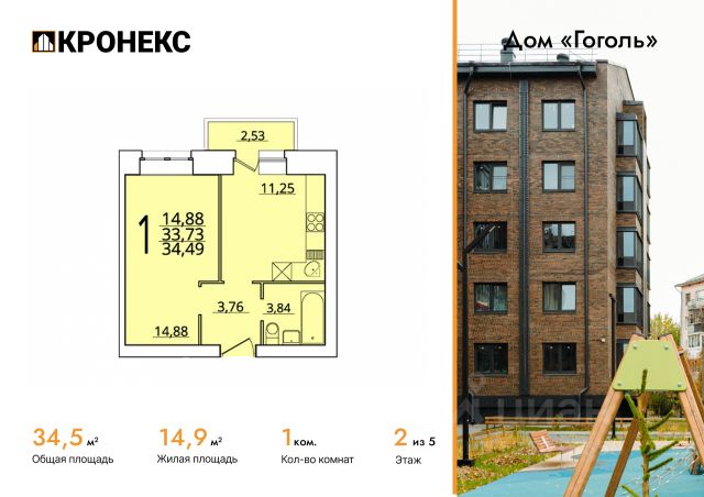 Продается 1-комн. кв-ра площадью 34.49 кв.м на 2 этаже 5 этажного кирпичного дома в Дом "Гоголь" ГК Кронекс. Авторский дом "Гоголь" в Северодвинске это уютный, малоквартирный дом на острове Ягры. В пешей доступности находится вся необходимая для жизни инфраструктура. В 15 минутах ходьбы набережная Белого моря, в 5 минутах ходьбы Заводской парк, в 8 минутах ходьбы вход на завод "Звёздочка". В доме 5 этажей, 2 подъезда и всего 85 квартир. Дом огорожен от улиц со всех сторон малоэтажными зданиями, находящимися на удалении, что обеспечивает тишину и свободный обзор из окон любого этажа. Фундамент свайный, толщина наружных стен 770 мм из тёплой керамики, 6-камерные оконные профили и 2-камерные стеклопакеты всё для долговечности, тепла и тишины. У дома большой благоустроенный двор с workout-зоной и детской игровой площадкой с разнообразными конструкциями. Территория организована в концепции "двор без машин". Вы выпускаете детей в безопасный двор и видите их из окна. Проезд к самому дому обеспечивается только по особым случаям: для тяжёлых грузов, для спецтехники и спецслужб. Всё остальное время проход между домом и площадкой для отдыха только пешеходный и совершенно безопасный. Таким образом зона личного комфорта человека, которая раньше ограничивалась входной дверью квартиры, расширяется до размеров целого двора. Продается 1-комнатная квартира в ипотеку в Северодвинске.
