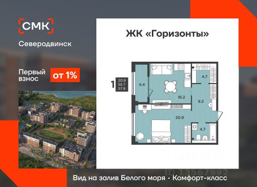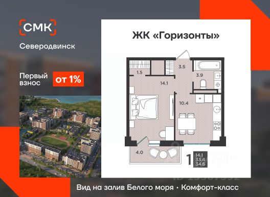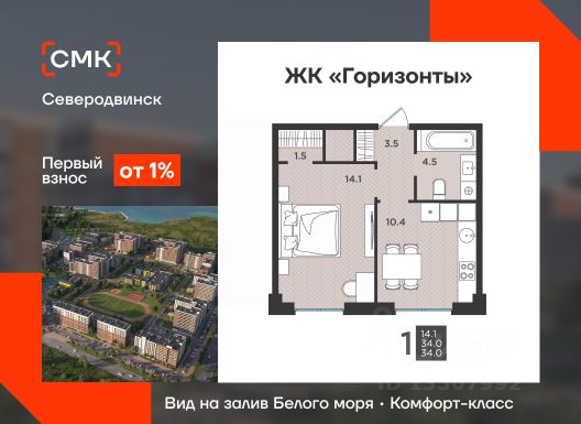 СМК Парк это пятиэтажный клубный дом класса комфорт. Жилой комплекс находится на перекрестке ул. Пионерская и ул. Советская. В непосредственной близости находится детский городской парк. В каждой парадной предусмотрено помещение для хранения колясок и велосипедов. Установлены современные малошумные импортные лифты. Парадные выполнены без ступеней. Отделка парадных и холлов выполнена по уникальному дизайнерскому. Пространство вокруг дома и входы/выходы из подъездов оборудованы современной системой видеонаблюдения и видеодомофонами. В строительстве наших домов мы используем современные материалы и технологии. Наружные стены дома выполняются в три слоя: мелкопористый камень "теплая керамика", эффективный утеплитель, облицовочный керамический кирпич. Отделка квартир Грэй Кей позволит Вам создать свое уникальное пространство без затрат на капитальный ремонт. Периметральная разводка системы отопления с поквартирным учетом тепла не только более функциональна, но и эстетически презентабельна. Двухтарифные электросчётчики позволят экономить на счетах за электроэнергию. Современные приборы отопления уменьшенной высоты со встроенными терморегуляторами дадут возможность регулировать температуру в каждой комнате Автоматизированный тепловой пункт с датчиками температуры поможет экономить на коммунальных платежах. Современный фасад с индивидуальными архитектурными органично впишется в городской пейзаж и подчеркнет высокий статус жильцов дома. Во всех квартирах устанавливаются энергоэффективные многокамерные стеклопакеты. Размер окон увеличен, реализована функция "защиты от детей". 1-комнатная квартира в монолитном доме в Северодвинске.