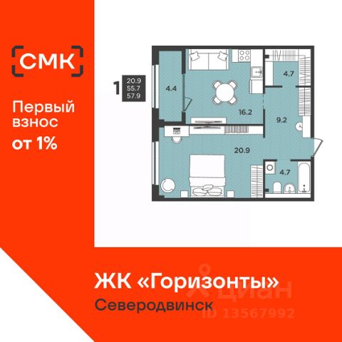Мы агентство Ваш дом! Каждый день мы проводим сделки: без первого взноса, с материнским капиталом без доп. вложений, с минимальным взносом 20%. . Каждый день мы одобряем ипотеку 2%; участникам сво (действующим и бывшим), одиноким родителям, молодым семьям, сотрудникам ОПК, всем работникам гос.мед. учреждений, педагогам. . Мы знаем когда достаточно только паспорта для покупки квартиры, мы знаем как работать с самыми сложными объектами. . Мы вам поможем! . В продаже в новом доме класса "комфорт+" на Яграх, в 10 мин. от Белого моря на 6 этаже. В квартире выполнен ремонт в формате White box, это значит Вам осталось только поклеить обои, постелить ламинат, это экономия времени и денег на черновых работах, свобода в выборе стиля, меньше мусора и шума. Дом оснащен видеонаблюдением, улучшенное сохранение тепла в доме, а также есть система "умный дом", отделка White Box. Закрытый двор, свободный от машин. Благоустроенный двор. Система бесключевого доступа в парадные и во двор. Лоджии с панорамным остеклением. Общий метраж 50,17, площадь кухни-гостинной 18,76 , площадь комнаты 18,93 , площадь коридора -5,81 , площадь санузла -4,09 , площадь лоджии -2,58. Специальное предложение! Одобрение ипотеки + одна консультация юриста в сфере недвижимости в подарок! 1-комнатная квартира в монолитном доме в Северодвинске.
