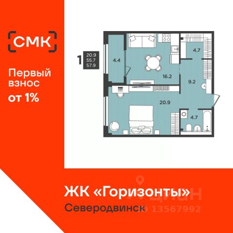 Код объекта: 1361972. Жилой комплекс "Аквилон SEVER" возводится в центре Северодвинска на пересечении ул. Тургенева, Чехова, Гайдара и Трудового переулка. Проект разработан в бюро известного финского архитектора Юкки Тикканена. Современная архитектура с геометрическими элементами в скандинавском стиле гармонично впишется в облик городского ландшафта. В пятиэтажном жилом комплексе разместятся 474 квартиры - 11 жилых секций. Все секции имеют входы-выходы на 2 стороны. Преимущества жилого комплекса ЖК "Аквилон SEVER": -Жилой комплекс будет состоять из 11 жилых секций этажностью 5 этажей. Все секции имеют входы-выходы не 2 стороны; -концепция Termo-S увеличенный слой утеплителя цоколя и кровли, а также установка многокамерных стеклопакетов с селективным покрытием. -монолитно-кирпичная конструкция дома, утеплитель, навесные фасады; -концепция Э4: эргономика, энергоэффективность класса А (высокая), экологичность и экономия; -система inHOME -просторные бесшумные лифты -детский клуб "Аквилон KIDS" в бесплатное пользование для самых маленьких жильцов; -дизайнерская отделка и энергосберегающее освещение мест общественного пользования; -колясочные, консьерж-сервис; -светопрозрачные входные группы; -безбарьерная среда (вход в подъезд и лифт с уровня земли); -обслуживание профессиональной управляющей компанией. Расположение: Развитый центральный район Северодвинска; развитая инфраструктура района, высокая транспортная доступность; в 3 минутах ходьбы Северодвинская городская больница 1 и Городская детская клиническая больница; рядом автобусные остановки, продуктовые магазины, аптеки, банки, салоны красоты, кафе и рестораны, В пешей доступности стадион "Север" со спортивными площадками, ледовой ареной и футбольным полем; Рядом средняя общеобразовательная школа 16 оборонно-спортивной направленности, Детский сад 27 "Сказка", Детско-юношеский центр, Федерация тхэквондо Архангельской области, Детский сад 49 "Белоснежка", Детский сад 62 "Родничок". Территория: -закрытый благоустроенный эко-двор с ландшафтным дизайном -двор с озеленением и ландшафтным дизайном, зона отдыха со скамейками и малыми архитектурными формами; -велопарковки на территории двора, подземный и наземный паркинг -зона street workout: уличные тренажеры и турники -зона с игровыми площадками -дренажная система "двор без луж"; -автомобильная парковка гостевая и подземная; -подземный паркинг с доступом на лифте. Срок сдачи новостройки IV кв. 2026 года 1-комнатная квартира в монолитном доме в Северодвинске.