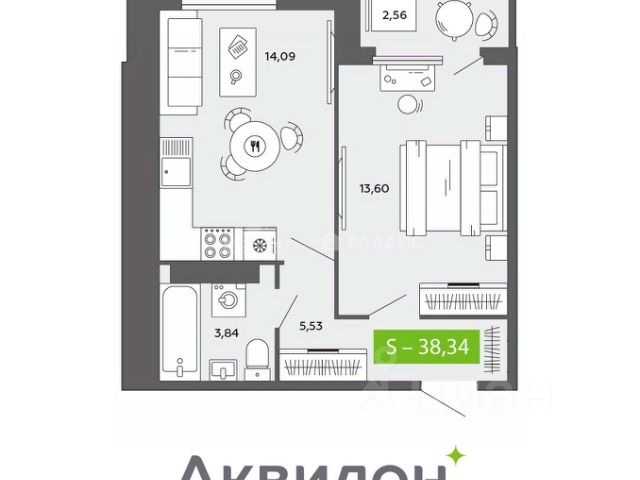 Квартира располагается на 16 этаже 16-этажного кирпично-монолитного дома. Общая площадь квартиры - 38,34 м². Комната площадью 13,6 м², кухня-гостиная - 14,09 м². Высокие потолки 2,7м. Квартира угловая, с видом из окон на улицу. На просторную лоджию с панорамным остеклением есть выход и из комнаты. В квартире выполнен ремонт white box, благодаря чему вы сможете оформить интерьер по своему вкусу. Также от застройщика можно заказать чистовую отделку.