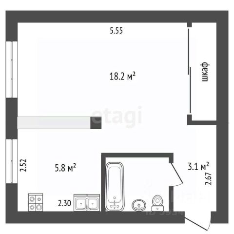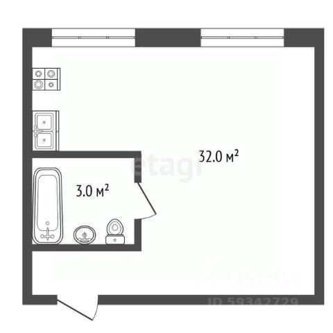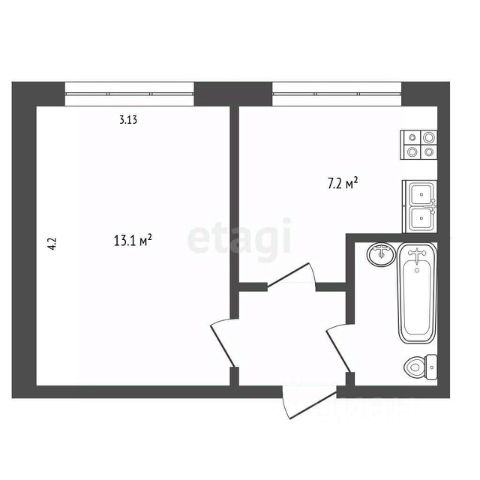 •1 комнатная, 29,1 кв.м. Этаж 2/5.