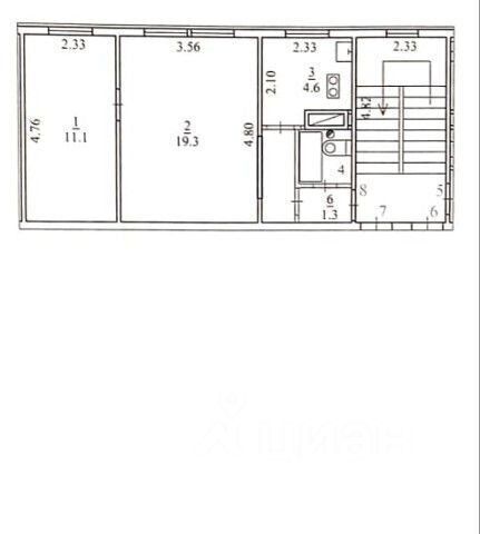 Общая площадь квартиры составляет 33,5 м2