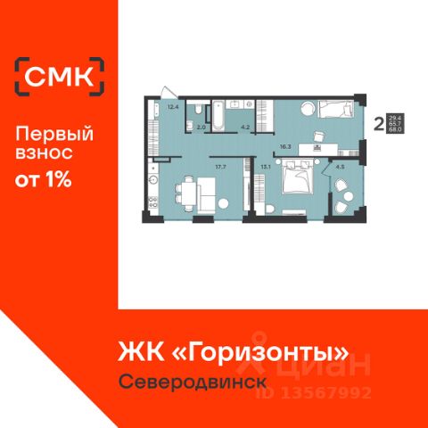Мероприятия месяца от Группы Аквилон: 01.05-11.05 Дарим полезные подарки при покупке квартиры! 16.05-18.05 Ипотечные выходные! Бесплатные консультации Акции месяца от Группы Аквилон: СКИДКИ до 32%! Комфортные программы рассрочки от Застройщика! Арктическая и Семейная ипотеки! Дарим мебель при покупке квартиры! Доп.СКИДКА 200 000 ₽ за использование мат.капитала! Доп.СКИДКА 2% за быстрый выход на сделку!Доп.СКИДКА 3% при 100% оплате! Отдел продаж работает без выходных. Продажа напрямую от Застройщика. Предчистовая отделка квартиры (готова к ремонту). Сдача в 2 кв. 2027 года! ЖИЛОЙ КОМПЛЕКС "Аквилон СЕВЕН": Дом класса "комфорт+". Монолитно-кирпичная конструкция дома, утеплитель, навесные фасады, класс энергосбережения А+ (высокий). Экономия на коммунальных платежах до 40%: автоматизированный тепловой пункт с датчиками температуры, коллекторная бесстояковая разводка системы отопления с поквартирным учетом тепла, двухтарифные электросчетчики, современные приборы отопления уменьшенной высоты со встроенными терморегуляторами. Система инХОУМ: контроль за квартирой из мобильного приложения, "умные" счетчики, датчики защиты от пожара и протечек, IP-домофония с интерактивным многофункциональным экраном в каждой квартире Видеонаблюдение. Авторская отделка холлов, бесшумные лифты. Кладовые для хранения вещей. ДЛЯ ДЕТЕЙ: Детский клуб "Аквилон ДЕТИ" в собственности жильцов. ДВОР: Закрытый двор. Благоустройство: разновозрастные детские площадки с антитравматическим покрытием, зона для спорта: уличные тренажеры и турники, велопарковки, зоны отдыха со скамейками, озеленение территории, малые архитектурные формы. Двор свободный от машин. Дренажная система "двор без луж". Подземный паркинг с доступом на лифте. КВАРТИРА: Большие окна, балконы/лоджии с остеклением во всех квартирах. Потолки до 3 м и не ниже 2,7 м. Увеличенный слой шумоизоляции в полах и перегородках. Энергоэффективные многокамерные стеклопакеты, улучшенная вентиляция. Преимущества покупки от Группы Аквилон: — БЕСПЛАТНОЕ юридическое сопровождение сделки, помощь в подаче заявки и одобрении ипотеки; — ВЫКУП вашей квартиры: обмен вторички на новострой моментально; Трейд-ин с доп. скидкой до 150 000 руб.; — доп. СКИДКА до 125 000 руб. для работников государственных бюджетных организаций в сфере образования, культуры и медицины, предприятий ОАО ПО "Севмаш", ОАО "ЦС "Звездочка", АО " СПО Арктика", многодетным семьям до 3 лет, жителям области. Продается 2-комнатная квартира 70 м2 в Северодвинске.