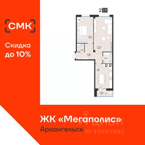 Акции месяца от Группы Аквилон: ПРОДАЖИ СТАРТОВАЛИ! Арктическая ипотека! Семейная ипотека! Доп.СКИДКА 2% при 100% оплате! Доп.СКИДКА 2% за быстрый выход на сделку! Отдел продаж работает без выходных. Продажа напрямую от Застройщика. Белая отделка квартиры (готова к ремонту). Сдача 3 кв. 2029 г. ЖИЛОЙ КОМПЛЕКС "Аквилон АЛЬТА": Проект от архитектурного бюро MLA+. ЖК класса "бизнес". Концепция Термо-С: монолитная конструкция дома с увеличенным слоем утеплителя и навесными фасадами. Стены 540 мм. Экономия на коммунальных платежах до 40%: коллекторная бесстояковая разводка системы отопления с поквартирным учетом тепла, двухтарифные электросчетчики, современные приборы отопления уменьшенной высоты со встроенными терморегуляторами. Увеличенный слой утеплителя, кровли и цоколя 180 мм, класс энергосбережения А+ (очень высокий). Система инХОУМ: контроль за квартирой из мобильного приложения, "умные" счетчики, датчики защиты от пожара, протечек, открытия входной двери, IP-домофония с интерактивным многофункциональным экраном в каждой квартире, единый ключ, открывающий двери в необходимые помещения, дистанционное отключение электроустановок в квартире. Видеонаблюдение. Дизайнерская отделка парадных, бесшумные и энергоэффективные лифты, колясочные. Светопрозрачные входные группы, безбарьерная среда (вход с уровня земли). Сити-боксы и паркинг на нулевом этаже. ДВОР: Закрытый двор. Благоустройство двора: разновозрастные детские площадки с антитравматическим покрытием, велопарковки, зоны отдыха со скамейками, озеленение территории. Двор свободный от машин. Дренажная система "двор без луж". КВАРТИРА: Лоджии во всех квартирах с панорамным остеклением, большие окна. Высота потолков не ниже 2,7 метра, высота потолков 3 м. на верхнем этаже Увеличенная шумоизоляция. Увеличенные и энергоэффективные многокамерные стеклопакеты, улучшенная вентиляция. Преимущества покупки от Группы Аквилон: — БЕСПЛАТНОЕ юридическое сопровождение сделки, помощь в подаче заявки и одобрении ипотеки; — АРКТИЧЕСКАЯ ИПОТЕКА; — ВЫКУП вашей квартиры: обмен вторички на новострой моментально; Трейд-ИН с доп. скидкой до 150 000 руб.; — доп. СКИДКА до 125 000 руб. для работников государственных бюджетных организаций в сфере образования, культуры и медицины, предприятий ОАО ПО "Севмаш", ОАО "ЦС "Звездочка", АО "СПО Арктика", многодетным семьям до 3 лет, жителям области. Продам 2-комнатную квартиру в округе Октябрьский в городе Архангельск.