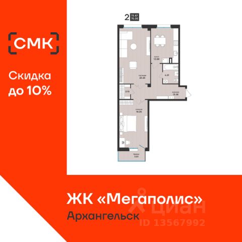 Акции месяца от Группы Аквилон: ПРОДАЖИ СТАРТОВАЛИ! Арктическая ипотека! Семейная ипотека! Доп.СКИДКА 2% при 100% оплате! Доп.СКИДКА 2% за быстрый выход на сделку! Отдел продаж работает без выходных. Продажа напрямую от Застройщика. Белая отделка квартиры (готова к ремонту). Сдача 3 кв. 2029 г. ЖИЛОЙ КОМПЛЕКС "Аквилон АЛЬТА": Проект от архитектурного бюро MLA+. ЖК класса "бизнес". Концепция Термо-С: монолитная конструкция дома с увеличенным слоем утеплителя и навесными фасадами. Стены 540 мм. Экономия на коммунальных платежах до 40%: коллекторная бесстояковая разводка системы отопления с поквартирным учетом тепла, двухтарифные электросчетчики, современные приборы отопления уменьшенной высоты со встроенными терморегуляторами. Увеличенный слой утеплителя, кровли и цоколя 180 мм, класс энергосбережения А+ (очень высокий). Система инХОУМ: контроль за квартирой из мобильного приложения, "умные" счетчики, датчики защиты от пожара, протечек, открытия входной двери, IP-домофония с интерактивным многофункциональным экраном в каждой квартире, единый ключ, открывающий двери в необходимые помещения, дистанционное отключение электроустановок в квартире. Видеонаблюдение. Дизайнерская отделка парадных, бесшумные и энергоэффективные лифты, колясочные. Светопрозрачные входные группы, безбарьерная среда (вход с уровня земли). Сити-боксы и паркинг на нулевом этаже. ДВОР: Закрытый двор. Благоустройство двора: разновозрастные детские площадки с антитравматическим покрытием, велопарковки, зоны отдыха со скамейками, озеленение территории. Двор свободный от машин. Дренажная система "двор без луж". КВАРТИРА: Лоджии во всех квартирах с панорамным остеклением, большие окна. Высота потолков не ниже 2,7 метра, высота потолков 3 м. на верхнем этаже Увеличенная шумоизоляция. Увеличенные и энергоэффективные многокамерные стеклопакеты, улучшенная вентиляция. Преимущества покупки от Группы Аквилон: — БЕСПЛАТНОЕ юридическое сопровождение сделки, помощь в подаче заявки и одобрении ипотеки; — АРКТИЧЕСКАЯ ИПОТЕКА; — ВЫКУП вашей квартиры: обмен вторички на новострой моментально; Трейд-ИН с доп. скидкой до 150 000 руб.; — доп. СКИДКА до 125 000 руб. для работников государственных бюджетных организаций в сфере образования, культуры и медицины, предприятий ОАО ПО "Севмаш", ОАО "ЦС "Звездочка", АО "СПО Арктика", многодетным семьям до 3 лет, жителям области. Продам 2-комнатную квартиру в округе Октябрьский в городе Архангельск.