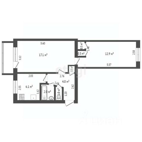Она несколько отличается от плана - вместо 2 комнат по плану я решил сделать одну отдельную спальню с большой двухместной кроватью и большой зал, совмещенный с кухней, а также гардеробную (которой в плане не было). Также объединил туалет с ванной, получилась большая туалетная комната. Жить одному/семьей с одним маленьким ребенком очень комфортно.