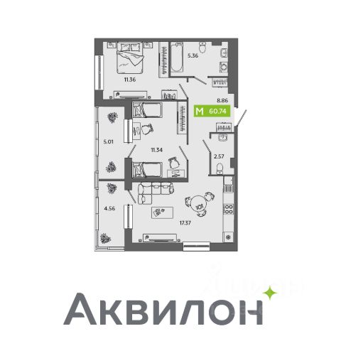Акции месяца от Группы Аквилон: Рассрочка с первым взносом 1% -23% на кладовую при покупке квартиры! У нас всё стабильно! СКИДКИ до 32%Субсидированная ипотека. ПСК: 24,025-29,852%. Ставка 12,4% для всех! Арктическая ипотека Семейная ипотека Доп.СКИДКА 2% при 100% оплате! Отдел продаж работает без выходных. Продажа напрямую от Застройщика. Отделка квартиры White box (готова к ремонту). Сдача в 3 квартале 2026 года! ЖИЛОЙ КОМПЛЕКС "АКВИЛONLINE": Дом класса "комфорт+". Монолитно-кирпичные стены толщиной 590мм, увеличенное утепление кровли и цоколя, класс энергосбережения А (высокий). Рядом вся инфраструктура: гимназия, детский сад, университет и техникумы, магазины, Парк культуры и отдыха. Расширение инфраструктуры в ближайшие годы. Экономия на коммунальных платежах до 40%: автоматизированный тепловой пункт с датчиками температуры, коллекторная бесстояковая разводка системы отопления с поквартирным учетом тепла, двухтарифные электросчетчики, современные приборы отопления уменьшенной высоты со встроенными терморегуляторами. Система inHOME: контроль за квартирой из мобильного приложения, "умные" счетчики, датчики защиты от пожара и протечек, IP-домофония с интерактивным многофункциональным экраном в каждой квартире Видеонаблюдение. Авторская отделка холлов, бесшумные лифты. ДВОР: Закрытая игровая площадка. Благоустройство: разновозрастные детские площадки с антитравматическим покрытием, зона street workout: уличные тренажеры и турники, велопарковки, зоны отдыха со скамейками, озеленение территории, малые архитектурные формы. Двор свободный от машин. Дренажная система "двор без луж". Большой наземный эко-паркинг. КВАРТИРА: Балконы/лоджии во всех квартирах с остеклением. Большие окна (подоконник до 60 см) Потолки не ниже 2,7 метра Увеличенный слой шумоизоляции в полах и перегородках Энергоэффективные многокамерные стеклопакеты, улучшенная вентиляция. Преимущества покупки от Группы Аквилон: — БЕСПЛАТНОЕ юридическое сопровождение сделки, помощь в подаче заявки и одобрении ипотеки; — Арктическая ипотека; — Семейная ипотека; — Рассрочка от застройщика; — ВЫКУП вашей квартиры: обмен вторички на новострой моментально; TRADE-IN с доп. скидкой до 150 000 руб.; — доп. СКИДКА до 125 000 руб. для работников государственных бюджетных организаций в сфере образования, культуры и медицины, предприятий ОАО ПО "Севмаш", ОАО "ЦС "Звездочка", АО " СПО Арктика", многодетным семьям до 3 лет, жителям области. Продам 2-комнатную квартиру с двумя санузлами в Северодвинске.