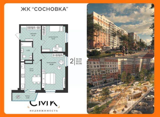 Жилой Район "Сосновка" - это современная территория для жизни с развивающейся инфраструктурой, расположенная в продолжении Московского проспекта в Архангельске. Жилой район состоит из 13-ти разновысотных жилых комплексов. На его территории будут построены два детских сада, две общеобразовательных школы и физкультурно-оздоровительный комплекс с бассейном, а также продуктовые магазины формата "у дома". Остановки общественного транспорта находятся в непосредственной близости с районом и помогают свободно перемещаться по городу. Это обусловлено основными транспортными артериями города: Ленинградским и Московским проспектами. Школы и детские сады будут расположены поблизости, поэтому детям не нужно переходить дорогу или ехать на общественном транспорте. Их образование и досуг реализуем на территории жилого района, что поможет повысить безопасность и сокращение затрат времени на дорогу. Важной частью обустройства жилого района является озеленение в том числе соснами, что создаст ощущение уединения и проживания за городом без потери развитой инфраструктуры. Собственная газовая котельная позволит на 45% снизить затраты на теплоснабжение и поможет не зависеть от централизованной системы подачи теплоносителя во внутридомовые системы отопления. Таким образом, горячее водоснабжение в доме не будут отключать во время общегородских гидравлических испытаний, а начало отопительного сезона зависит от решения собственников. Объекты социальной значимости На территории нового района будут построены физкультурно-оздоровительный комплекс с бассейном, два детских сада и две новые общеобразовательные школы. Образование детей и досуг всей семьи будет реализован полностью Продается 2-комнатная квартира на 13 этаже в Архангельске.