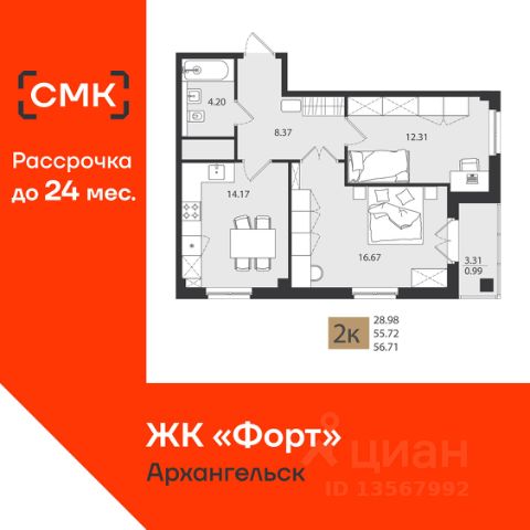 Акции месяца от Группы Аквилон: Ипотека БЕЗ первого взноса для сотрудников ОСК! СКИДКИ до 2,1 млн ₽ на готовые квартиры!СКИДКА до 25% на паркинги и кладовые! РАССРОЧКА на 100 дней без удорожания! Арктическая ипотека! Семейная ипотека!Рассрочка от Застройщика! Отдел продаж работает без выходных. Продажа напрямую от Застройщика. Отделка квартиры White box (готова к ремонту). Дом сдан! ЖИЛОЙ КОМПЛЕКС "Аквилон CITY Towers": Проект разработан международным архитектурным бюро MLA+ (Нидерланды). ЖК класса "комфорт-плюс". Концепция Termo-S: монолитно-кирпичная технология, внешние стены 460 мм. Экономия на коммунальных платежах до 40%: автоматизированный тепловой пункт с датчиками температуры, коллекторная бесстояковая разводка системы отопления с поквартирным учетом тепла, двухтарифные электросчетчики, современные приборы отопления уменьшенной высоты со встроенными терморегуляторами. Увеличенный слой утеплителя, кровли и цоколя 180 мм, класс энергосбережения А+ (очень высокий). Система inHOME: контроль за квартирой из мобильного приложения, "умные" счетчики, датчики защиты от пожара и протечек, IP-домофония с интерактивным многофункциональным экраном в каждой квартире, единый ключ smart key, открывающий двери в необходимые помещения. Видеонаблюдение, консьерж-сервис. Grand Lobby, Дизайнерская отделка холлов, светопрозрачные входные группы, бесшумные лифты. Подземный паркинг и сити-боксы на нулевом этаже. Собственный детский сад на 75 мест. ДЛЯ ДЕТЕЙ: Детский клуб "Аквилон KIDS" в бесплатное пользование жильцов. ДВОР: Закрытый двор. Благоустройство двора-сада: разновозрастные детские площадки с антитравматическим покрытием, веревочная пирамида, зона street workout: уличные тренажеры и турники, велопарковки, зоны отдыха со скамейками, озеленение территории, столы для пинг-понга. Двор свободный от машин. Дренажная система "двор без луж". КВАРТИРА: Лоджии во всех квартирах с панорамным остеклением, большие окна. Потолки не ниже 2,7 метра. Энергоэффективные многокамерные стеклопакеты, улучшенная вентиляция. Преимущества покупки от Группы Аквилон: — БЕСПЛАТНОЕ юридическое сопровождение сделки, помощь в подаче заявки и одобрении ипотеки; — АРКТИЧЕСКАЯ ИПОТЕКА; — ВЫКУП вашей квартиры: обмен вторички на новострой моментально; TRADE-IN с доп. скидкой до 150 000 руб.; — доп. СКИДКА до 125 000 руб. для работников государственных бюджетных организаций в сфере образования, культуры и медицины, предприятий ОАО ПО "Севмаш", ОАО "ЦС "Звездочка", АО " СПО Арктика", многодетным семьям до 3 лет, жителям области.