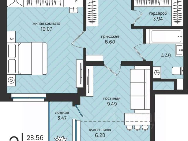 - удобная, современная планировка общей площадью 36,99 кв.м.;