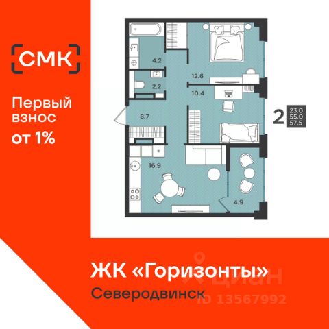 Мероприятия месяца от Группы Аквилон: 18.04 Бесплатная экскурсия по новостройкам! Акции месяца от Группы Аквилон: Рассрочка на ПЕРВЫЙ ВЗНОС! В апреле СКИДКИ до 32%! Комфортные программы рассрочки от Застройщика! Арктическая и Семейная ипотеки! Дарим мебель при покупке квартиры! Доп.СКИДКА 200 000 ₽ за использование мат.капитала! Доп.СКИДКА 2% за быстрый выход на сделку!Доп.СКИДКА 3% при 100% оплате! Отдел продаж работает без выходных. Продажа напрямую от Застройщика. Предчистовая отделка (готова к ремонту). Сдача в 4 кв. 2026 года! ЖИЛОЙ КОМПЛЕКС "Аквилон СЕВЕР": Дом класса "комфорт+". Монолитно-кирпичная конструкция дома, утеплитель, навесные фасады, класс энергосбережения А+ (высокий). Экономия на коммунальных платежах до 40%: автоматизированный тепловой пункт с датчиками температуры, коллекторная бесстояковая разводка системы отопления с поквартирным учетом тепла, двухтарифные электросчетчики, современные приборы отопления уменьшенной высоты со встроенными терморегуляторами. Система инХОУМ: контроль за квартирой из мобильного приложения, "умные" счетчики, датчики защиты от пожара и протечек, IP-домофония с интерактивным многофункциональным экраном в каждой квартире Видеонаблюдение. Авторская отделка холлов, бесшумные лифты. Кладовые для хранения вещей. ДЛЯ ДЕТЕЙ: Детский клуб "Аквилон ДЕТИ" в собственности жильцов. ДВОР: Закрытый двор. Благоустройство: разновозрастные детские площадки с антитравматическим покрытием, зона для спортаt: уличные тренажеры и турники, велопарковки, зоны отдыха со скамейками, озеленение территории, малые архитектурные формы. Двор свободный от машин. Дренажная система "двор без луж". Подземный паркинг с доступом на лифте. КВАРТИРА: Большие окна, балконы/лоджии с остеклением во всех квартирах. Потолки до 3,3 м и не ниже 2,7 м. Увеличенный слой шумоизоляции в полах и перегородках. Энергоэффективные многокамерные стеклопакеты, улучшенная вентиляция. Преимущества покупки от Группы Аквилон: — БЕСПЛАТНОЕ юридическое сопровождение сделки, помощь в подаче заявки и одобрении ипотеки; — Арктическая ипотека; — Семейная ипотека; — ВЫКУП вашей квартиры: обмен вторички на новострой моментально; Трейд-ин с доп. скидкой до 150 000 руб.; — доп. СКИДКА до 125 000 руб. для работников государственных бюджетных организаций в сфере образования, культуры и медицины, предприятий ОАО ПО "Севмаш", ОАО "ЦС "Звездочка", АО " СПО Арктика", многодетным семьям до 3 лет, жителям области. Продается 2-комнатная квартира на 4 этаже в Северодвинске.