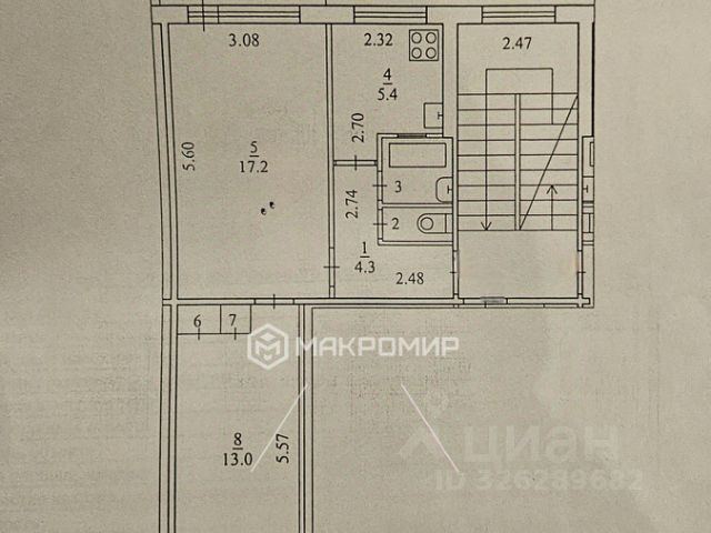 Квартира обладает смежно-изолированной планировкой, что предоставляет свободу в расстановке мебели и уютной обстановке. Жилая площадь составляет 32 кв.м, а кухня площадью 6 кв.м. Газовая плита и хорошая кухонная мебель остаются для нового владельца.