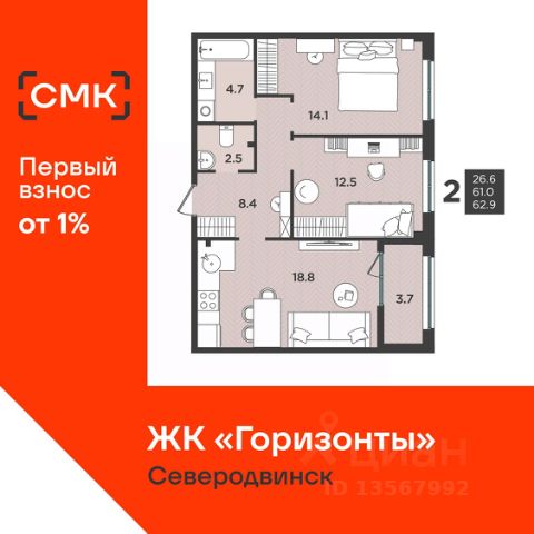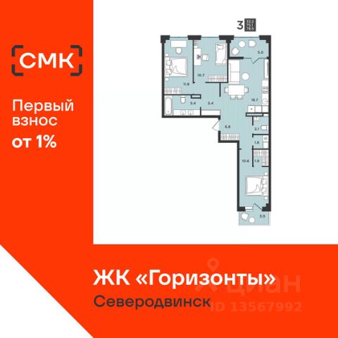 Акции месяца от Группы Аквилон: 0% — ваш первоначальный взнос на квартиру!В марте СКИДКИ до 32% или ОТДЕЛКА в ПОДАРОК!Ипотека БЕЗ первого взноса для сотрудников ОСК! Рассрочка с первым взносом 1% Доп.СКИДКА 2% за быстрый выход на сделку! Субсидированная ипотека. ПСК: 24,025-29,852%. Ставка 12,4% для всех! Арктическая ипотека Семейная ипотека Доп.СКИДКА 2% при 100% оплате! Отдел продаж работает без выходных. Продажа напрямую от Застройщика. Отделка квартиры White box (готова к ремонту). Сдача дома: II кв. 2026 года! ЖИЛОЙ КОМПЛЕКС "Квартал 100": Дом класса "комфорт+" из кирпича "теплая керамика" В центре города рядом с Драматическим театром, с видом на Театральное озеро.. Рядом вся инфраструктура: школы, детские сады, детская поликлиника, ТЦ "ЦУМ" и ТЦ "Гранд". Экономия на коммунальных платежах до 40%: автоматизированный тепловой пункт с датчиками температуры, коллекторная бесстояковая разводка системы отопления с поквартирным учетом тепла, двухтарифные электросчетчики, современные приборы отопления уменьшенной высоты со встроенными терморегуляторами. Система инХОУМ: контроль за квартирой из мобильного приложения, "умные" счетчики, датчики защиты от пожара и протечек, IP-домофония с интерактивным многофункциональным экраном в каждой квартире Видеонаблюдение. Авторская отделка холлов, бесшумные лифты. Подземный паркинг ДЛЯ ДЕТЕЙ: Детский клуб "Аквилон ДЕТИ" в собственности жильцов. Детский сад на территории ЖК на 140 мест ДВОР: Закрытый двор. Благоустройство: разновозрастные детские площадки с антитравматическим покрытием, зона street workout: уличные тренажеры и турники, велопарковки, зоны отдыха со скамейками, озеленение территории, малые архитектурные формы. Двор свободный от машин. Дренажная система "двор без луж". КВАРТИРА: Балконы/лоджии во всех квартирах с остеклением. Большие окна (подоконник до 60 см) Потолки до 3,0 м, не ниже 2,7 метра Увеличенный слой шумоизоляции в полах и перегородках Энергоэффективные многокамерные стеклопакеты, улучшенная вентиляция. Преимущества покупки от Группы Аквилон: — БЕСПЛАТНОЕ юридическое сопровождение сделки, помощь в подаче заявки и одобрении ипотеки; — Арктическая ипотека; — Семейная ипотека; — Рассрочка от застройщика; — ВЫКУП вашей квартиры: обмен вторички на новострой моментально; ТРЕЙД-ИН с доп. скидкой до 150 000 руб.; — доп. СКИДКА до 125 000 руб. для работников государственных бюджетных организаций в сфере образования, культуры и медицины, предприятий ОАО ПО "Севмаш", ОАО "ЦС "Звездочка", АО " СПО Арктика", многодетным семьям до 3 лет, жителям области. 2-комнатная квартира в новостройке в Северодвинске.