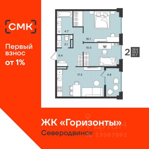 Акции месяца от Группы Аквилон: 0% — ваш первоначальный взнос на квартиру!В марте СКИДКИ до 32% или ОТДЕЛКА в ПОДАРОК! Ипотека БЕЗ первого взноса для сотрудников ОСК! Рассрочка с первым взносом 1% Доп.СКИДКА 2% за быстрый выход на сделку! Субсидированная ипотека. ПСК: 24,025-29,852%. Ставка 12,4% для всех! Арктическая ипотека Семейная ипотека Доп.СКИДКА 2% при 100% оплате! Отдел продаж работает без выходных. Продажа напрямую от Застройщика. Предчистовая отделка квартиры (готова к ремонту). Сдача в 3 кв. 2026 года! ЖИЛОЙ КОМПЛЕКС "Аквилон НЕО" 3 очереди: Дом класса "комфорт+". Монолитно-кирпичные стены толщиной 570мм, усиленное утепление кровли, класс энергосбережения А (высокий). Экономия на коммунальных платежах до 40%: автоматизированный тепловой пункт с датчиками температуры, коллекторная бесстояковая разводка системы отопления с поквартирным учетом тепла, двухтарифные электросчетчики, современные приборы отопления уменьшенной высоты со встроенными терморегуляторами. Система инХОУМ: контроль за квартирой из мобильного приложения, "умные" счетчики, датчики защиты от пожара и протечек, IP-домофония с интерактивным многофункциональным экраном в каждой квартире Видеонаблюдение. Авторская отделка холлов, бесшумные лифты. Кладовые для хранения вещей. ДЛЯ ДЕТЕЙ: Детский клуб "Аквилон ДЕТИ" в собственности жильцов. ДВОР: Закрытый двор. Благоустройство: разновозрастные детские площадки с антитравматическим покрытием, зона street workout: уличные тренажеры и турники, велопарковки, зоны отдыха со скамейками, озеленение территории, малые архитектурные формы. Двор свободный от машин. Дренажная система "двор без луж". Вместительная парковка на 132 м/м. КВАРТИРА: Балконы/лоджии во всех квартирах с остеклением. Большие окна (подоконник до 60 см) Потолки до 3,0 м, не ниже 2,7 метра Увеличенный слой шумоизоляции в полах и перегородках Энергоэффективные многокамерные стеклопакеты, улучшенная вентиляция. Преимущества покупки от Группы Аквилон: — БЕСПЛАТНОЕ юридическое сопровождение сделки, помощь в подаче заявки и одобрении ипотеки; — Арктическая ипотека; — Семейная ипотека; — Рассрочка от застройщика; — ВЫКУП вашей квартиры: обмен вторички на новострой моментально; ТРЕЙД-ИН с доп. скидкой до 150 000 руб.; — доп. СКИДКА до 125 000 руб. для работников государственных бюджетных организаций в сфере образования, культуры и медицины, предприятий ОАО ПО "Севмаш", ОАО "ЦС "Звездочка", АО " СПО Арктика", многодетным семьям до 3 лет, жителям области. Купить 2-комнатную квартиру в новостройке без отделки в Северодвинске.