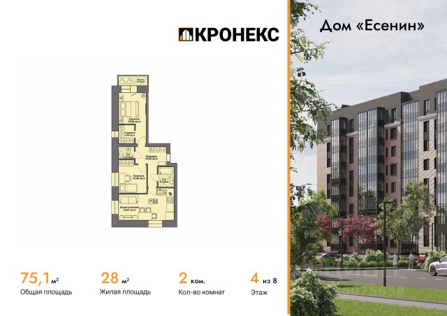 Продается 2-комн. кв-ра площадью 36.68 кв.м на 2 этаже 8 этажного кирпичного дома в Дом "Есенин" от ГК Кронекс. Добро пожаловать в авторский дом "Есенин" новое слово в городском комфорте. Обширная закрытая территория проекта граничит с сектором низкой застройки, что обеспечивает свободный обзор пространства даже из окон нижних этажей. Район отличается разнообразной сервисной инфраструктурой в 5-10 минутах ходьбы от дома. При этом оживлённость улицы не доставит беспокойства будущим жильцам, благодаря максимальной звукоизоляции окон. Особенной гордостью создателей проекта является авторская ландшафтная архитектура, включающая множество зон для отдыха детей и взрослых, собственный парк и поле для командных спортивных игр. Авторский дом "Есенин" сочетает масштаб и технологичность с тёплой эстетикой и уютной обособленностью, что придётся по душе ценителям камерной атмосферы старого города. Архитектура Фасад дома выполнен в сдержанной цветовой гамме, где кирпичная кладка приятного оттенка гармонично сочетается с темными элементами отделки. Это придает зданию элегантность. Большие окна, обеспечивают отличное естественное освещение в квартирах. Остекленные балконы добавляют современности и функциональности, предоставляя дополнительное пространство для отдыха и наслаждения видами. Продается 2-комнатная квартира в ипотеку в новостройке в Северодвинске.
