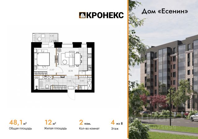 Продается 2-комн. кв-ра площадью 36.68 кв.м на 2 этаже 8 этажного кирпичного дома в Дом "Есенин" от ГК Кронекс. Добро пожаловать в авторский дом "Есенин" новое слово в городском комфорте. Обширная закрытая территория проекта граничит с сектором низкой застройки, что обеспечивает свободный обзор пространства даже из окон нижних этажей. Район отличается разнообразной сервисной инфраструктурой в 5-10 минутах ходьбы от дома. При этом оживлённость улицы не доставит беспокойства будущим жильцам, благодаря максимальной звукоизоляции окон. Особенной гордостью создателей проекта является авторская ландшафтная архитектура, включающая множество зон для отдыха детей и взрослых, собственный парк и поле для командных спортивных игр. Авторский дом "Есенин" сочетает масштаб и технологичность с тёплой эстетикой и уютной обособленностью, что придётся по душе ценителям камерной атмосферы старого города. Архитектура Фасад дома выполнен в сдержанной цветовой гамме, где кирпичная кладка приятного оттенка гармонично сочетается с темными элементами отделки. Это придает зданию элегантность. Большие окна, обеспечивают отличное естественное освещение в квартирах. Остекленные балконы добавляют современности и функциональности, предоставляя дополнительное пространство для отдыха и наслаждения видами. Продается 2-комнатная квартира в ипотеку в новостройке в Северодвинске.