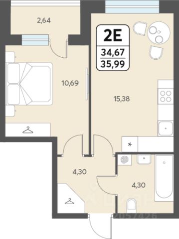 Продаётся 2-комнатная квартира в строящемся доме (Дом 1 этап 1), срок сдачи: IV-кв. 2027, общей площадью 35.99 кв.м., на 1 этаже. Новый жилой комплекс "Тетрис" от застройщика "СЗ Новый дом" расположен по адресу: г. Архангельск, улица В.И. Воронина.