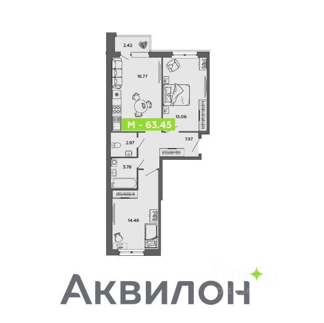 Акции месяца от Группы Аквилон: Рассрочка с первым взносом 1% ДАРИМ отделку и сертификат на 40 000 ₽! СКИДКИ до 32%! Субсидированная ипотека. ПСК: 24,025-29,852%. Ставка 12,4% для всех! Арктическая ипотека! Семейная ипотека. Дополнительная СКИДКА 1%! Доп.СКИДКА 2% при 100% оплате! Отдел продаж работает без выходных. Продажа напрямую от Застройщика. Отделка квартиры White box (готова к ремонту). Сдача в 2 кв. 2027 года! ЖИЛОЙ КОМПЛЕКС "Аквилон SEVEN": Дом класса "комфорт+". Монолитно-кирпичная конструкция дома, утеплитель, навесные фасады, класс энергосбережения А+ (высокий). Экономия на коммунальных платежах до 40%: автоматизированный тепловой пункт с датчиками температуры, коллекторная бесстояковая разводка системы отопления с поквартирным учетом тепла, двухтарифные электросчетчики, современные приборы отопления уменьшенной высоты со встроенными терморегуляторами. Система inHOME: контроль за квартирой из мобильного приложения, "умные" счетчики, датчики защиты от пожара и протечек, IP-домофония с интерактивным многофункциональным экраном в каждой квартире Видеонаблюдение. Авторская отделка холлов, бесшумные лифты. Кладовые для хранения вещей. ДЛЯ ДЕТЕЙ: Детский клуб "Аквилон KIDS" в собственности жильцов. ДВОР: Закрытый двор. Благоустройство: разновозрастные детские площадки с антитравматическим покрытием, зона street workout: уличные тренажеры и турники, велопарковки, зоны отдыха со скамейками, озеленение территории, малые архитектурные формы. Двор свободный от машин. Дренажная система "двор без луж". Подземный паркинг с доступом на лифте. КВАРТИРА: Большие окна, балконы/лоджии с остеклением во всех квартирах. Потолки до 3 м и не ниже 2,7 м. Увеличенный слой шумоизоляции в полах и перегородках. Энергоэффективные многокамерные стеклопакеты, улучшенная вентиляция. Преимущества покупки от Группы Аквилон: — БЕСПЛАТНОЕ юридическое сопровождение сделки, помощь в подаче заявки и одобрении ипотеки; — ВЫКУП вашей квартиры: обмен вторички на новострой моментально; TRADE-IN с доп. скидкой до 150 000 руб.; — доп. СКИДКА до 125 000 руб. для работников государственных бюджетных организаций в сфере образования, культуры и медицины, предприятий ОАО ПО "Севмаш", ОАО "ЦС "Звездочка", АО " СПО Арктика", многодетным семьям до 3 лет, жителям области. 2-комнатная квартира с лоджией в Архангельской области.