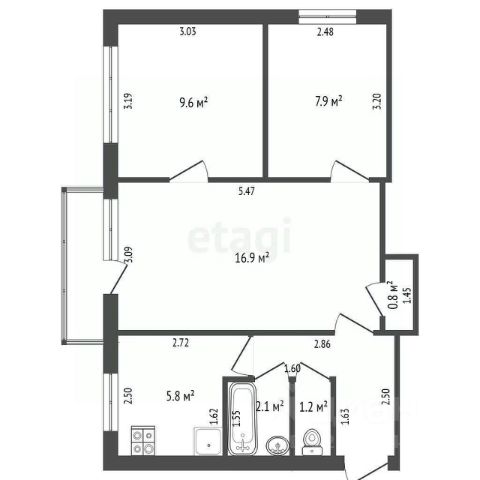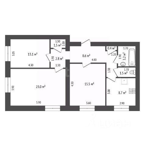 Планировка грамотно зонирована, комнаты функциональны и подходят как для комфортной жизни, так и для сдачи в аренду.
