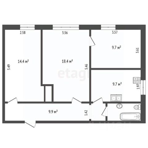 Общая площадь квартиры составляет 55, 3 м2. Проходная гостиная (19, 5 м2) и две изолированных спальни (12, 9+10, 3 м2). Кухня 6 м2 и совмещённый санузел. Канализационный стояк чугунный, в хорошем состоянии. Чистый, ухоженный подъезд, после ремонта. Стены выкрашены, побелены, заменены стеклопакеты.