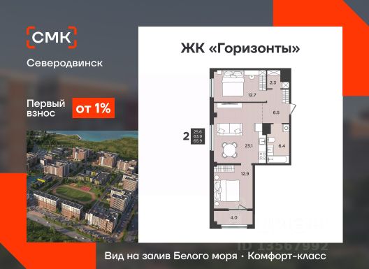 Акции месяца от Группы Аквилон: Ипотека БЕЗ первого взноса для сотрудников ОСК! СКИДКА до 35%! Арктическая ипотека! Семейная ипотека! Траншевая ипотека! Выгодная рассрочка напрямую от Застройщика! Доп.СКИДКА 2% за быстрый выход на сделку! Доп.СКИДКА 2% при 100% оплате! Отдел продаж работает без выходных. Продажа напрямую от Застройщика. Белая отделка квартиры (готова к ремонту). Сдача 4 кв. 2027 г. ЖИЛОЙ КОМПЛЕКС "АКВИЛОН ДУАЛ": Проект от известного финского архитектурного бюро "Ярвинен". ЖК класса "комфорт +". Концепция Термо-С: монолитная конструкция дома с увеличенным слоем утеплителя и навесными фасадами. Стены 540 мм. Экономия на коммунальных платежах до 40%: коллекторная бесстояковая разводка системы отопления с поквартирным учетом тепла, двухтарифные электросчетчики, современные приборы отопления уменьшенной высоты со встроенными терморегуляторами. Увеличенный слой утеплителя, кровли и цоколя 180 мм, класс энергосбережения А+ (очень высокий). Система инХОУМ: контроль за квартирой из мобильного приложения, "умные" счетчики, датчики защиты от пожара, протечек, открытия входной двери, IP-домофония с интерактивным многофункциональным экраном в каждой квартире, единый ключ, открывающий двери в необходимые помещения, дистанционное отключение электроустановок в квартире. Видеонаблюдение. Дизайнерская отделка парадных, бесшумные и энергоэффективные лифты, колясочные. Светопрозрачные входные группы, безбарьерная среда (вход с уровня земли). Сити-боксы на нулевом этаже. ДВОР: Закрытый двор. Благоустройство двора: разновозрастные детские площадки с антитравматическим покрытием, турники, велопарковки, зоны отдыха со скамейками, озеленение территории. Двор свободный от машин. Дренажная система "двор без луж". КВАРТИРА: Лоджии во всех квартирах с панорамным остеклением, большие окна. Высота потолков не ниже 2,7 метра, высота потолков 3 м. на верхнем этаже Увеличенная шумоизоляция. Увеличенные и энергоэффективные многокамерные стеклопакеты, улучшенная вентиляция. Преимущества покупки от Группы Аквилон: — БЕСПЛАТНОЕ юридическое сопровождение сделки, помощь в подаче заявки и одобрении ипотеки; — АРКТИЧЕСКАЯ ИПОТЕКА; — ВЫКУП вашей квартиры: обмен вторички на новострой моментально; Трейд-ИН с доп. скидкой до 150 000 руб.; — доп. СКИДКА до 125 000 руб. для работников государственных бюджетных организаций в сфере образования, культуры и медицины, предприятий ОАО ПО "Севмаш", ОАО "ЦС "Звездочка", АО "СПО Арктика", многодетным семьям до 3 лет, жителям области.