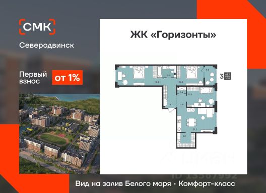 Акции месяца от Группы Аквилон: ПРОДАЖИ СТАРТОВАЛИ! Арктическая ипотека! Семейная ипотека! Доп.СКИДКА 2% при 100% оплате! Доп.СКИДКА 2% за быстрый выход на сделку! Отдел продаж работает без выходных. Продажа напрямую от Застройщика. Белая отделка квартиры (готова к ремонту). Сдача 3 кв. 2029 г. ЖИЛОЙ КОМПЛЕКС "Аквилон АЛЬТА": Проект от архитектурного бюро MLA+. ЖК класса "бизнес". Концепция Термо-С: монолитная конструкция дома с увеличенным слоем утеплителя и навесными фасадами. Стены 540 мм. Экономия на коммунальных платежах до 40%: коллекторная бесстояковая разводка системы отопления с поквартирным учетом тепла, двухтарифные электросчетчики, современные приборы отопления уменьшенной высоты со встроенными терморегуляторами. Увеличенный слой утеплителя, кровли и цоколя 180 мм, класс энергосбережения А+ (очень высокий). Система инХОУМ: контроль за квартирой из мобильного приложения, "умные" счетчики, датчики защиты от пожара, протечек, открытия входной двери, IP-домофония с интерактивным многофункциональным экраном в каждой квартире, единый ключ, открывающий двери в необходимые помещения, дистанционное отключение электроустановок в квартире. Видеонаблюдение. Дизайнерская отделка парадных, бесшумные и энергоэффективные лифты, колясочные. Светопрозрачные входные группы, безбарьерная среда (вход с уровня земли). Сити-боксы и паркинг на нулевом этаже. ДВОР: Закрытый двор. Благоустройство двора: разновозрастные детские площадки с антитравматическим покрытием, велопарковки, зоны отдыха со скамейками, озеленение территории. Двор свободный от машин. Дренажная система "двор без луж". КВАРТИРА: Лоджии во всех квартирах с панорамным остеклением, большие окна. Высота потолков не ниже 2,7 метра, высота потолков 3 м. на верхнем этаже Увеличенная шумоизоляция. Увеличенные и энергоэффективные многокамерные стеклопакеты, улучшенная вентиляция. Преимущества покупки от Группы Аквилон: — БЕСПЛАТНОЕ юридическое сопровождение сделки, помощь в подаче заявки и одобрении ипотеки; — АРКТИЧЕСКАЯ ИПОТЕКА; — ВЫКУП вашей квартиры: обмен вторички на новострой моментально; Трейд-ИН с доп. скидкой до 150 000 руб.; — доп. СКИДКА до 125 000 руб. для работников государственных бюджетных организаций в сфере образования, культуры и медицины, предприятий ОАО ПО "Севмаш", ОАО "ЦС "Звездочка", АО "СПО Арктика", многодетным семьям до 3 лет, жителям области.