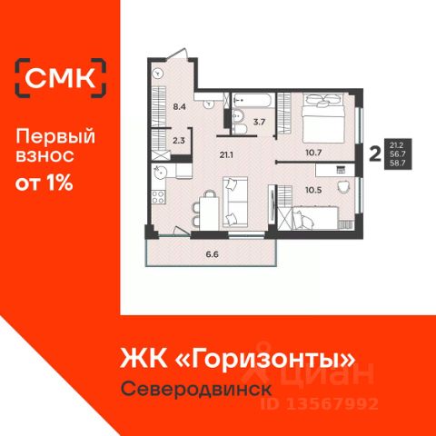Мероприятия месяца от Группы Аквилон: 18.04 Бесплатная экскурсия по новостройкам! Акции месяца от Группы Аквилон: Рассрочка на ПЕРВЫЙ ВЗНОС! В апреле СКИДКИ до 32%! Комфортные программы рассрочки от Застройщика! Арктическая и Семейная ипотеки! Дарим мебель при покупке квартиры! Доп.СКИДКА 200 000 ₽ за использование мат.капитала! Доп.СКИДКА 2% за быстрый выход на сделку!Доп.СКИДКА 3% при 100% оплате! Отдел продаж работает без выходных. Продажа напрямую от Застройщика. Предчистовая отделка (готова к ремонту). Сдача в 4 кв. 2026 года! ЖИЛОЙ КОМПЛЕКС "Аквилон СЕВЕР": Дом класса "комфорт+". Монолитно-кирпичная конструкция дома, утеплитель, навесные фасады, класс энергосбережения А+ (высокий). Экономия на коммунальных платежах до 40%: автоматизированный тепловой пункт с датчиками температуры, коллекторная бесстояковая разводка системы отопления с поквартирным учетом тепла, двухтарифные электросчетчики, современные приборы отопления уменьшенной высоты со встроенными терморегуляторами. Система инХОУМ: контроль за квартирой из мобильного приложения, "умные" счетчики, датчики защиты от пожара и протечек, IP-домофония с интерактивным многофункциональным экраном в каждой квартире Видеонаблюдение. Авторская отделка холлов, бесшумные лифты. Кладовые для хранения вещей. ДЛЯ ДЕТЕЙ: Детский клуб "Аквилон ДЕТИ" в собственности жильцов. ДВОР: Закрытый двор. Благоустройство: разновозрастные детские площадки с антитравматическим покрытием, зона для спортаt: уличные тренажеры и турники, велопарковки, зоны отдыха со скамейками, озеленение территории, малые архитектурные формы. Двор свободный от машин. Дренажная система "двор без луж". Подземный паркинг с доступом на лифте. КВАРТИРА: Большие окна, балконы/лоджии с остеклением во всех квартирах. Потолки до 3,3 м и не ниже 2,7 м. Увеличенный слой шумоизоляции в полах и перегородках. Энергоэффективные многокамерные стеклопакеты, улучшенная вентиляция. Преимущества покупки от Группы Аквилон: — БЕСПЛАТНОЕ юридическое сопровождение сделки, помощь в подаче заявки и одобрении ипотеки; — Арктическая ипотека; — Семейная ипотека; — ВЫКУП вашей квартиры: обмен вторички на новострой моментально; Трейд-ин с доп. скидкой до 150 000 руб.; — доп. СКИДКА до 125 000 руб. для работников государственных бюджетных организаций в сфере образования, культуры и медицины, предприятий ОАО ПО "Севмаш", ОАО "ЦС "Звездочка", АО " СПО Арктика", многодетным семьям до 3 лет, жителям области.