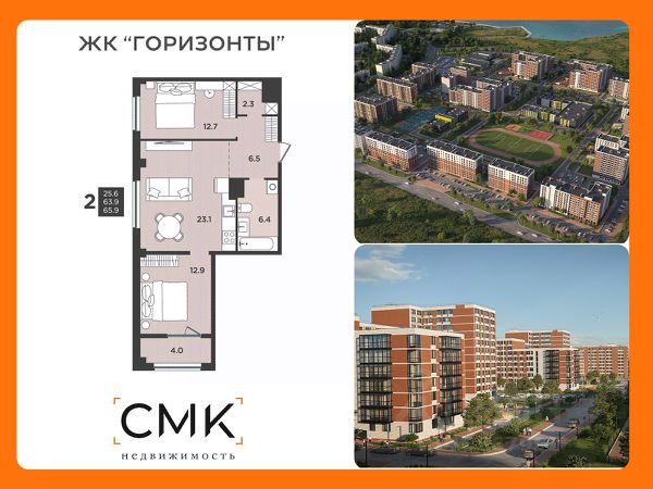 Продаётся 2-комнатная квартира в строящемся доме (Дом 1), срок сдачи: IV-кв. 2026, общей площадью 65.9 кв.м., на 2 этаже. Новый Авторский дом "Республика" от застройщика "СЗ Спецстройпроект" расположен по адресу: г. Северодвинск, проспект Ленина