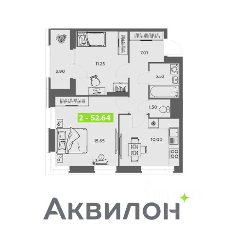 • ✓ В базе Циан 1 3-комнатных квартир на последнем этаже в Мирном
