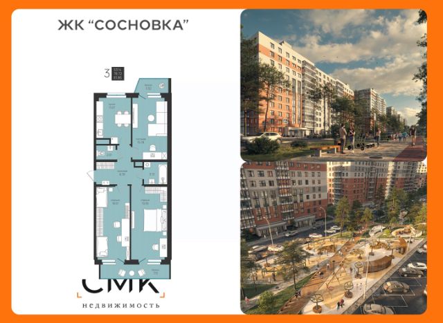 Жилой Район "Сосновка" - это современная территория для жизни с развивающейся инфраструктурой, расположенная в продолжении Московского проспекта в Архангельске. Жилой район состоит из 13-ти разновысотных жилых комплексов. На его территории будут построены два детских сада, две общеобразовательных школы и физкультурно-оздоровительный комплекс с бассейном, а также продуктовые магазины формата "у дома". Остановки общественного транспорта находятся в непосредственной близости с районом и помогают свободно перемещаться по городу. Это обусловлено основными транспортными артериями города: Ленинградским и Московским проспектами. Школы и детские сады будут расположены поблизости, поэтому детям не нужно переходить дорогу или ехать на общественном транспорте. Их образование и досуг реализуем на территории жилого района, что поможет повысить безопасность и сокращение затрат времени на дорогу. Важной частью обустройства жилого района является озеленение в том числе соснами, что создаст ощущение уединения и проживания за городом без потери развитой инфраструктуры. Собственная газовая котельная позволит на 45% снизить затраты на теплоснабжение и поможет не зависеть от централизованной системы подачи теплоносителя во внутридомовые системы отопления. Таким образом, горячее водоснабжение в доме не будут отключать во время общегородских гидравлических испытаний, а начало отопительного сезона зависит от решения собственников. Объекты социальной значимости На территории нового района будут построены физкультурно-оздоровительный комплекс с бассейном, два детских сада и две новые общеобразовательные школы. Образование детей и досуг всей семьи будет реализован полностью 3-комнатная квартира в новостройке в районе Майская Горка в городе Архангельск.