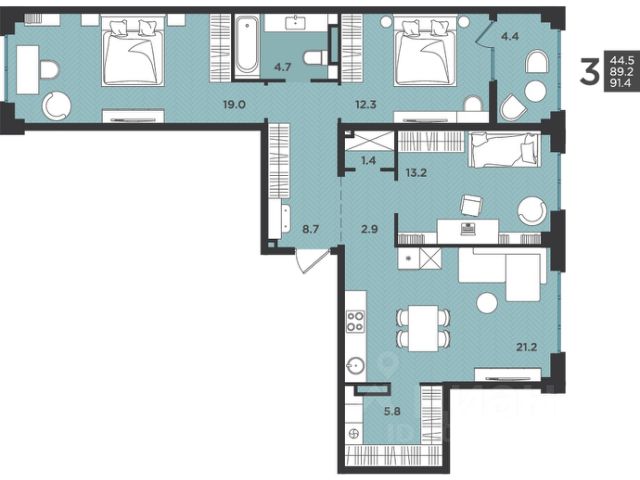 119 000 ₽/м²