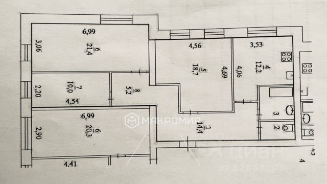 Kвартиpa с удобной планирoвкой - большая отдельная кухня - 9.40 м2,