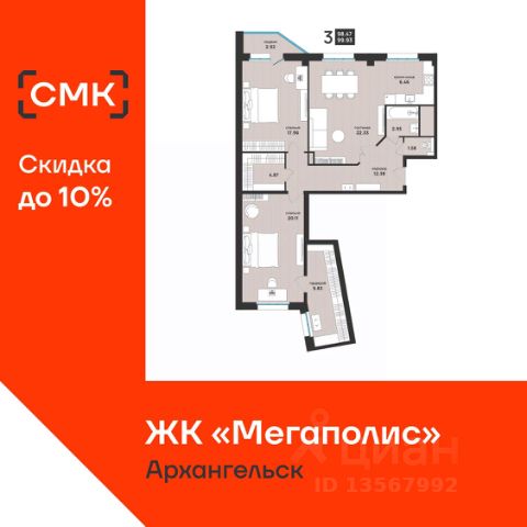 Акции месяца от Группы Аквилон: Ипотека БЕЗ первого взноса для сотрудников ОСК! Арктическая ипотека! Семейная ипотека! Выгодная рассрочка напрямую от Застройщика! Доп.СКИДКА 2% за быстрый выход на сделку! Доп.СКИДКА 2% при 100% оплате! Отдел продаж работает без выходных. Продажа напрямую от Застройщика. Белая отделка квартиры (готова к ремонту). Сдача 2 кв. 2028 г. ЖИЛОЙ КОМПЛЕКС "Аквилон УЛЬТРА": Проект от архитектурного бюро GAFA. ЖК класса "бизнес". Концепция Термо-С: монолитная конструкция дома с увеличенным слоем утеплителя и навесными фасадами. Стены 540 мм. Экономия на коммунальных платежах до 40%: коллекторная бесстояковая разводка системы отопления с поквартирным учетом тепла, двухтарифные электросчетчики, современные приборы отопления уменьшенной высоты со встроенными терморегуляторами. Увеличенный слой утеплителя, кровли и цоколя 180 мм, класс энергосбережения А+ (очень высокий). Система инХОУМ: контроль за квартирой из мобильного приложения, "умные" счетчики, датчики защиты от пожара, протечек, открытия входной двери, IP-домофония с интерактивным многофункциональным экраном в каждой квартире, единый ключ, открывающий двери в необходимые помещения, дистанционное отключение электроустановок в квартире. Видеонаблюдение. Дизайнерская отделка парадных, бесшумные и энергоэффективные лифты, колясочные. Светопрозрачные входные группы, безбарьерная среда (вход с уровня земли). Сити-боксы и паркинг на нулевом этаже. ДВОР: Закрытый двор. Благоустройство двора: разновозрастные детские площадки с антитравматическим покрытием, велопарковки, зоны отдыха со скамейками, озеленение территории. Двор свободный от машин. Дренажная система "двор без луж". КВАРТИРА: Лоджии во всех квартирах с панорамным остеклением, большие окна. Высота потолков не ниже 2,85 метра, высота потолков 3 м. на верхнем этаже Увеличенная шумоизоляция. Увеличенные и энергоэффективные многокамерные стеклопакеты, улучшенная вентиляция. Преимущества покупки от Группы Аквилон: — БЕСПЛАТНОЕ юридическое сопровождение сделки, помощь в подаче заявки и одобрении ипотеки; — АРКТИЧЕСКАЯ ИПОТЕКА; — ВЫКУП вашей квартиры: обмен вторички на новострой моментально; Трейд-ИН с доп. скидкой до 150 000 руб.; — доп. СКИДКА до 125 000 руб. для работников государственных бюджетных организаций в сфере образования, культуры и медицины, предприятий ОАО ПО "Севмаш", ОАО "ЦС "Звездочка", АО "СПО Арктика", многодетным семьям до 3 лет, жителям области.
