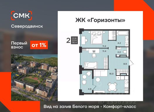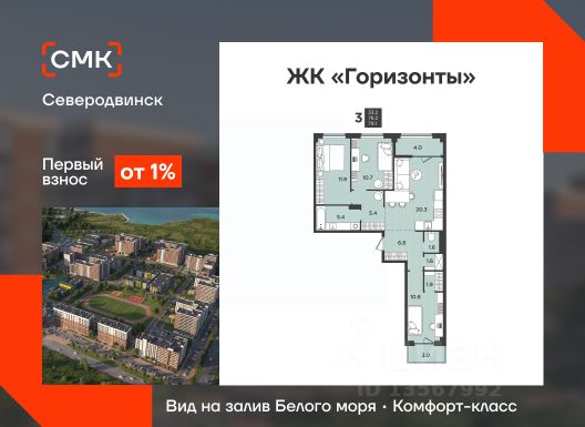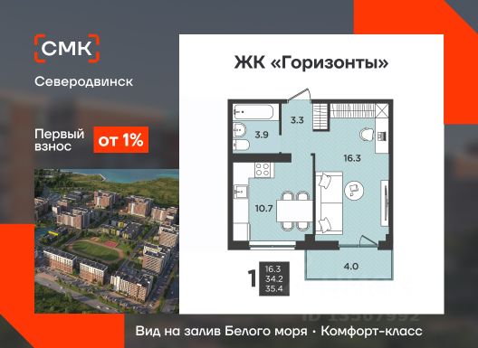 Горизонты-Арктика - это третий дом в комплексной застройке на ул. Крымской. На берегу Белого моря в Северодвинске ведется возведение нового квартала, в котором будет своя инфраструктура: школа, детское дошкольное учреждение, физкультурно-оздоровительный комплекс и подземные паркинги с доступом на лифтах. Преимущества Горизонты-Арктика: • Квартиры с панорамными видами на залив Белого моря. Находясь дома, Вы можете наслаждаться незабываемыми видами закатов и рассветов. • Зона street workout во дворе. Уличные тренажеры и турники для поддержания формы и укрепления здоровья. • Высокие потолки. • Велосипедные и колясочные на первом этаже вашего дома. • Функциональные планировки.