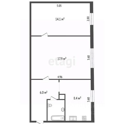 Квартира в жилом состоянии, площадь 51,2 кв.м, жилая 35,4 кв.м (комнаты 14,3+10,4-10,7 кв.м), кухня 5,6 кв.м, окна выходят на разные стороны дома!