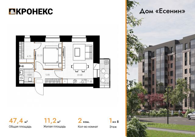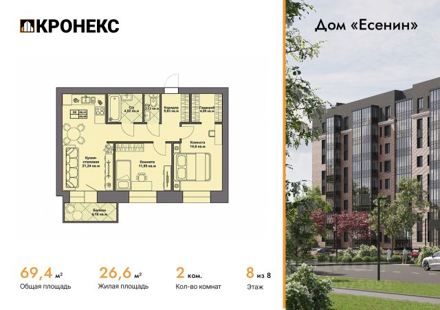 Продается квартира-студия площадью 25.87 кв.м на 1 этаже 8 этажного кирпичного дома в Дом "Есенин" от ГК Кронекс. Добро пожаловать в авторский дом "Есенин" новое слово в городском комфорте. Обширная закрытая территория проекта граничит с сектором низкой застройки, что обеспечивает свободный обзор пространства даже из окон нижних этажей. Район отличается разнообразной сервисной инфраструктурой в 5-10 минутах ходьбы от дома. При этом оживлённость улицы не доставит беспокойства будущим жильцам, благодаря максимальной звукоизоляции окон. Особенной гордостью создателей проекта является авторская ландшафтная архитектура, включающая множество зон для отдыха детей и взрослых, собственный парк и поле для командных спортивных игр. Авторский дом "Есенин" сочетает масштаб и технологичность с тёплой эстетикой и уютной обособленностью, что придётся по душе ценителям камерной атмосферы старого города. Архитектура Фасад дома выполнен в сдержанной цветовой гамме, где кирпичная кладка приятного оттенка гармонично сочетается с темными элементами отделки. Это придает зданию элегантность. Большие окна, обеспечивают отличное естественное освещение в квартирах. Остекленные балконы добавляют современности и функциональности, предоставляя дополнительное пространство для отдыха и наслаждения видами. Купить квартиру в ипотеку в новостройке в Архангельской области.