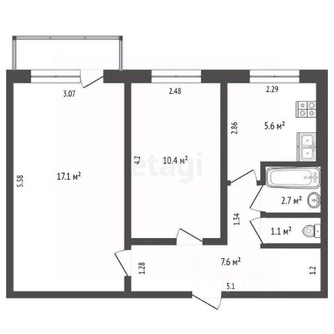 • ✅ Объект наибольшей площади: 63,2 м²