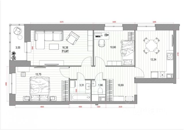 Белая отделка квартиры (готова к ремонту).