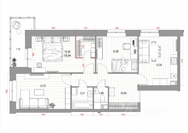 Концепция Термо-С: каркасно-монолитная технология, внешние стены 540 мм.