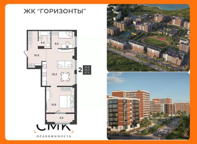 • ✅ Минимальная площадь: 24,6 м²