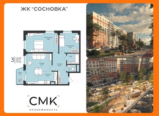 • ✅ Минимальная площадь: 18,1 м²