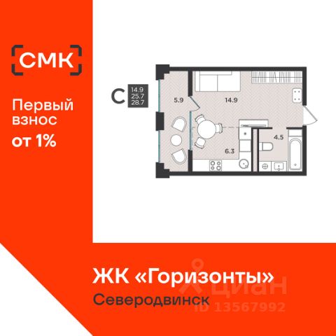 Акции месяца от Группы Аквилон: 0% — ваш первоначальный взнос на квартиру!В марте СКИДКИ до 32% или ОТДЕЛКА в ПОДАРОК! Ипотека БЕЗ первого взноса для сотрудников ОСК! Рассрочка с первым взносом 1% Доп.СКИДКА 2% за быстрый выход на сделку! Субсидированная ипотека. ПСК: 24,025-29,852%. Ставка 12,4% для всех! Арктическая ипотека Семейная ипотека Доп.СКИДКА 2% при 100% оплате! Отдел продаж работает без выходных. Продажа напрямую от Застройщика. Предчистовая отдлека квартиры (готова к ремонту). Сдача в 2 кв. 2027 года! ЖИЛОЙ КОМПЛЕКС "Аквилон СЕВЕН": Дом класса "комфорт+". Монолитно-кирпичная конструкция дома, утеплитель, навесные фасады, класс энергосбережения А+ (высокий). Экономия на коммунальных платежах до 40%: автоматизированный тепловой пункт с датчиками температуры, коллекторная бесстояковая разводка системы отопления с поквартирным учетом тепла, двухтарифные электросчетчики, современные приборы отопления уменьшенной высоты со встроенными терморегуляторами. Система инХОУМ: контроль за квартирой из мобильного приложения, "умные" счетчики, датчики защиты от пожара и протечек, IP-домофония с интерактивным многофункциональным экраном в каждой квартире Видеонаблюдение. Авторская отделка холлов, бесшумные лифты. Кладовые для хранения вещей. ДЛЯ ДЕТЕЙ: Детский клуб "Аквилон ДЕТИ" в собственности жильцов. ДВОР: Закрытый двор. Благоустройство: разновозрастные детские площадки с антитравматическим покрытием, зона для спорта: уличные тренажеры и турники, велопарковки, зоны отдыха со скамейками, озеленение территории, малые архитектурные формы. Двор свободный от машин. Дренажная система "двор без луж". Подземный паркинг с доступом на лифте. КВАРТИРА: Большие окна, балконы/лоджии с остеклением во всех квартирах. Потолки до 3 м и не ниже 2,7 м. Увеличенный слой шумоизоляции в полах и перегородках. Энергоэффективные многокамерные стеклопакеты, улучшенная вентиляция. Преимущества покупки от Группы Аквилон: — БЕСПЛАТНОЕ юридическое сопровождение сделки, помощь в подаче заявки и одобрении ипотеки; — ВЫКУП вашей квартиры: обмен вторички на новострой моментально; ТРЕЙД-ИН с доп. скидкой до 150 000 руб.; — доп. СКИДКА до 125 000 руб. для работников государственных бюджетных организаций в сфере образования, культуры и медицины, предприятий ОАО ПО "Севмаш", ОАО "ЦС "Звездочка", АО " СПО Арктика", многодетным семьям до 3 лет, жителям области.