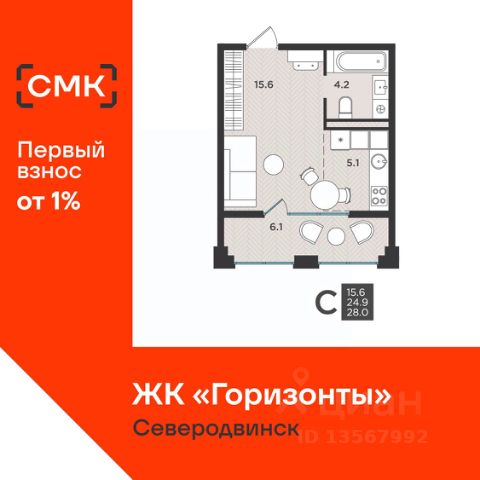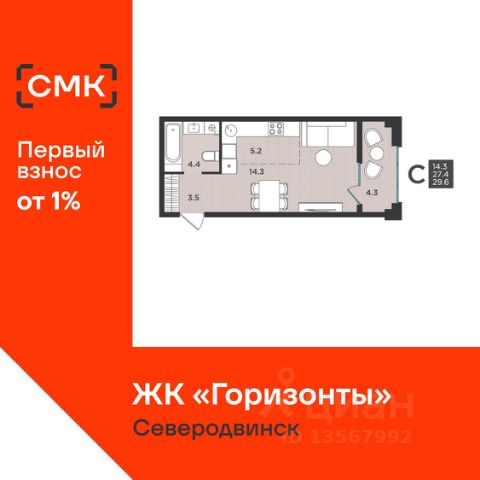 Продаётся студия в ЖК Нэо (г. Северодвинск, пр. Труда, 74к1). Прямая продажа от собственника. Приёмка квартиры у застройщика производилась совместно со специалистами специализированной компании. В ЖК Нэо: - дизайнерская отделка парадных и холлов; - видеонаблюдение; - детский клуб; - система умный дом inНОМЕ; - балконы с панорамным остеклением; - коллекторная разводка системы отопления с поквартирным учетом тепла; - современные приборы отопления со встроенными терморегуляторами; - двухтарифные электросчетчики. На территории ЖК: - закрытая территория; - зоны отдыха; - игровые площадки; - озеленение; - наземный паркинг; - места для хранения колясок и велосипедов; - уличные тренажеры и турники; - пункты выдачи заказов, кафе, магазины. Возле дома располагается вся необходимая для жизни инфраструктура: - ТЦ Гала Парк; - ТЦ Май; - ТЦ Кваратал - фитнес-клуб Палестра - детский сад Лесная сказка; - школа 28; - салоны красоты; - медицинские центры.