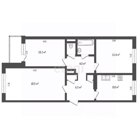 Коридор: 6,3 м2