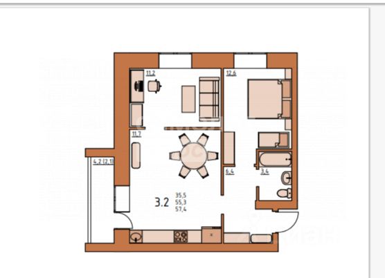 | 🔷 Средняя цена за м2: | 57,1 тыс. ₽/м² |