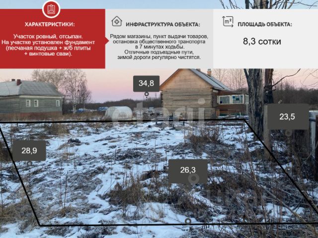 В продаже участок у реки - 8.3 сотки. Участок ровный, отсыпан. На участке установлен фундамент (песчаная подушка + ж/б плиты + винтовые сваи). Имеются грядки для посадок. По границе участка проходит электричество, а так же в 2025 году проведен газ, есть возможность подключения к центральному водоснабжению. Рядом магазины, пункт выдачи товаров, остановка общественного транспорта в 7 минутах ходьбы. Отличные подъездные пути, зимой дороги регулярно чистятся. Прекрасный вариант для тех, кто любит жить в отдалении от шумных дорог! Постройте свой дом мечты в тихом и спокойном месте! Звоните! Записывайтесь на просмотр! Код пользователя: 190824 Номер в базе: 10481526 Отличный участок 8 соток.